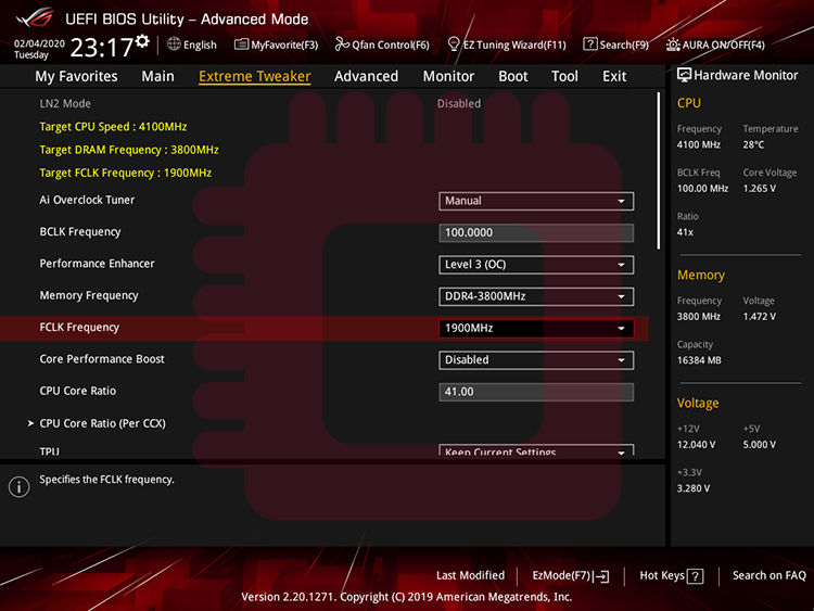 fClkが自動でmClkと自動的に同期しない場合,UEFIから手動で1867 MHzまたは1900 MHzに設定します.