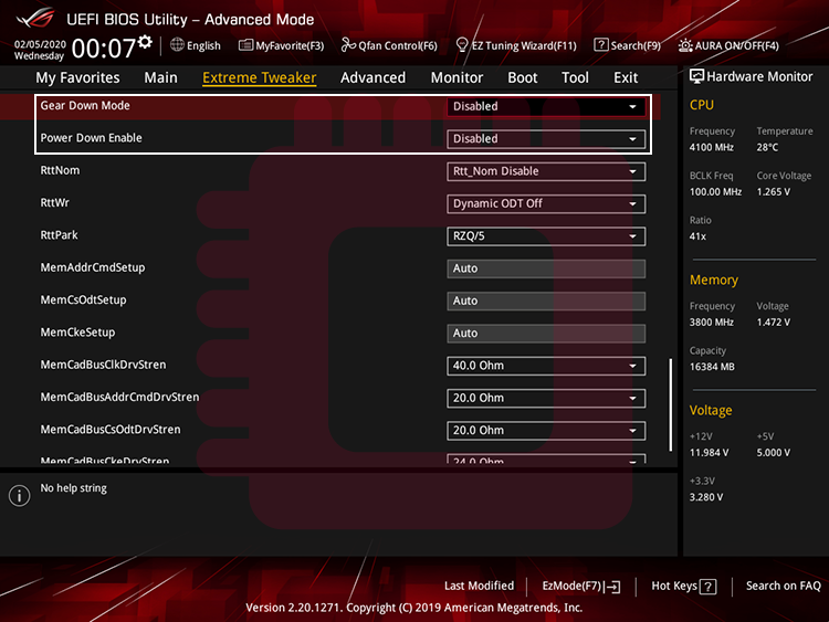 ProcODT (Processor On-Die Termination)… これは終端抵抗を意味します.ProcODTの値を1つずつ検証します.常用では60 Ω以下が安全です.