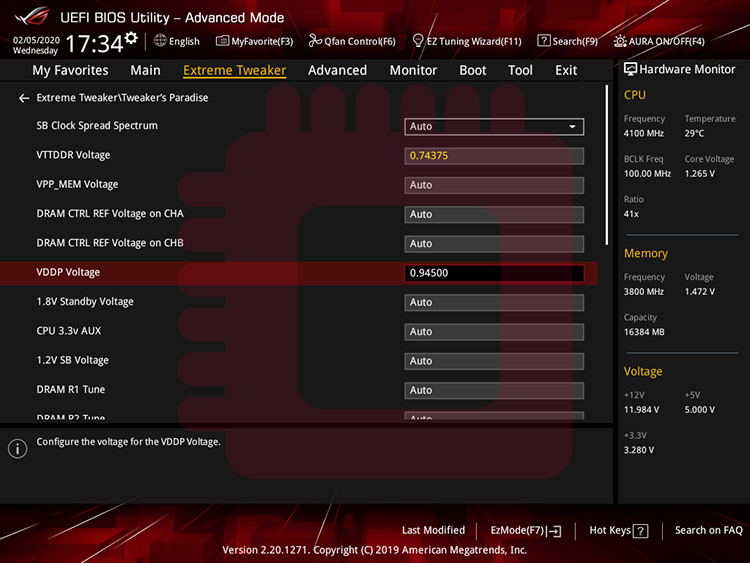 DRAM voltage… If you use Samsung B-Die memories, up to 1.5 V or slightly higher for daily-use.